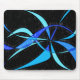 En modern abstraktsvart- och blåttmousepad med en kall färgpennateckning av en vågigt slösar den finned fisken.