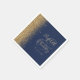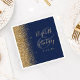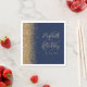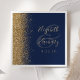 Den lämnat kant i denna elegant moderna bröllop-servetter har en guld faux glitter-design. Med anpassadet kombineras handskrift och mönsterskylt typsnitt på guld-färgad över en stor yta på en marin blå bakgrund.