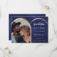 Ett foto Spara datumkortet för bröllop på framsidan: Lägg till ett eget storlekt foto för lodrät. Faux guld fotoarch ram. En blå bakgrund, vit text. Anpassa och lägg till namn och datum.