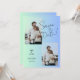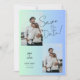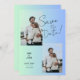 Skapa en fantastisk spara bröllopsinbjudan med den här moderna fotomallen. Utformningen har en vacker beige och gröntens blå övertoningsbakgrund som tillför lite elegans och sofistikering. Du kan enkelt anpassa texten, typsnitt och färg till kostym i stil och tema. Lägg till ett eget foto för att göra det mer personligt och känslomässigt. Det här är ett perfekt sätt att tillkännage din förlovning och inbjudan dina gäster att fira din speciella dag med dig.
