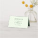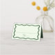 Lägg till en snyggt till din bröllopsmottagning eller speciella händelse med de här Modern Vågigt Ram bröllop-platskorten! Återdesignen visningarna "Bord" i ett handskript för grönt med utrymme för skriva av gästens namn och bordsnummer. Ett mörk grönt vågigt gräns omger det mönster som kontrasterar mot en ljust grönt bakgrund. Baksidan av det vikna platskortet har namn och bröllop-datumet med fet grönt.