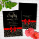 Den här feminin- och klassfödelsedagsinbjudan har en Egypten med geometrisk kontur och röda bukband bröllop guld mot svart bakgrund. All text kan anpassas efter dina behov.