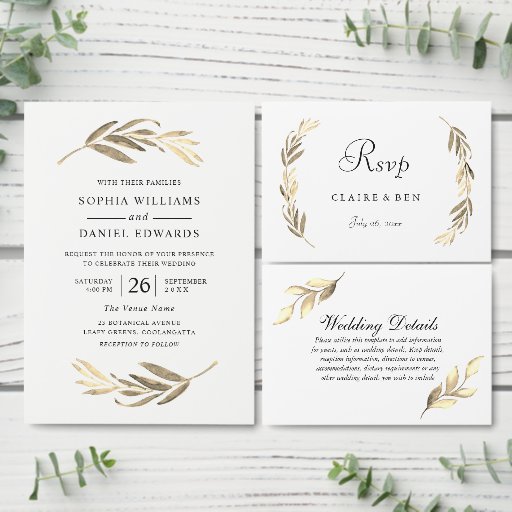Modern Guld Löv Elegant bröllop Inbjudan Se matchande samling i butik