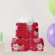Den här designen har elegant, roligt och festliga röda och vita poinsettia-blommor och julklapp i bollar med röd bakgrund.