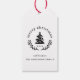 Juletiketter på anpassningsbar-designad med Julgran-glob och eget namn framtill, svart buffel-kontroll mönster på baksidan.