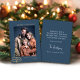 Ett kort med snyggt-anpassningsbar med fotot "god jul"-julklapp med modernt, minimalistiskt, modernt guld på elegantens chic blå bakgrund. Bilden och texten kan enkelt vara personlig för en design som är lika unik som din speciella familj! Lägg till säsonhälsningar eller glad helg. Bilden som visas är endast avsedd som illustration för att ersättas med ett eget foto. #christmas #semesterkort #modern #family #guld #blue