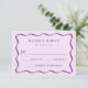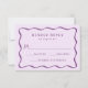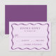 Vi introducerar vår OSA kort från den moderna insamlingen av Vågigt Ram, där sofistikeringen möter stil. Med den namnteckning mörk lilan som vågigt ram mot en ljus lila bakgrund lägger OSA kort till en liten bit stil till din bröllop-svit. Förenkla din planering och upplev bröllop med vår moderna Lila Vågigt Ram OSA kort.