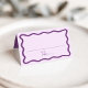 Lägg till en snyggt till din bröllopsmottagning eller speciella händelse med de här Modern Vågigt Ram bröllop-platskorten! Återdesignen visningarna "Bord" i ett handskrivet lila-skript med utrymme för skriva av gästens namn och bordsnummer. En lila i mörken vågigt gräns omger den utformning som kontrasterar mot en ljus bakgrund i lilan. På baksidan av det vikta platskortet finns namn och bröllop-datumet med fet lila text.
