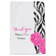 Visa att din gillande till din maid of honor eller andra bröllopdeltagare med denna tackar som dig bröllopfavörgåvan hänger lös. Perfekt som ska fyllas med en speciella gåva eller gåvor som visar din gillande. Trendig modern svartvit luxe design med ett djärvt stänk av shock rosanejlikor. Matchar den moderna luxe nejlikabröllopuppsättningen. Skräddarsy/personifiera dessa gåvafavören hänger lös med dina deltagare betitlar, namn och ett personligt meddelande eller tack. Läser för närvarande tackar dig maid of honor Arianna. Unik konst och design av Sarah Trett.