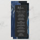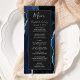 Den här eleganten har den moderna bröllop-menyn en vattenfärgsblå, blå, agate-bakgrund som trimmas med silver faux glitter. Texten visas i handskrift av elegant silver grått och sans serif typsnitt på en svartvit rektangel. Den agate-designen upprepas på motsatt sida.