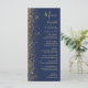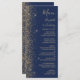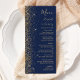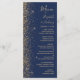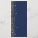 Den moderna bröllop-menyn på den lämnat kant i eleganten har en guld faux glitter-design. Anpassadet kombinerar handskrift, rityta och kursivt typsnitt i blek guld-färgad med en marin blå bakgrund. Den omvända sidan har en matchande marin blå och guld glitter-design.