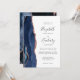 Den moderna bröllopsinbjudan från elegantens lämnat kant har en marin blå vattenfärgsagat gräns som trimmas med faux ro guld glitter. Anpassadet kombinerar handskrift, tryckplåt och kursivt typsnitt i grått i kol mot vit bakgrund. Den omvända sidan har en matchande marin blå utformning och ro guld-agatdesign.