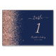 Det moderna bröllop-bordsnumrets lämnat kant i eleganten har ett utkast från ro guld faux glitter. Anpassadet kombinerar handskrift, rityta och kursivt typsnitt med handstil för ro rosa på en marin blå bakgrund.