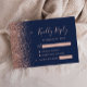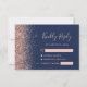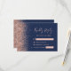 Det moderna kanten i elegantens lämnar djurutrymme i bröllop OSA har ett ro faux glitter gräns i guld. Med anpassadet kombineras handskrift, rityta och kursivt typsnitt i blek ro mot en marin blå bakgrund. Den omvända sidan har en matchande marin blå och ro guld-design.