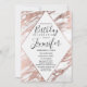 Modern, elegant och chic faux tryckt ro guld och vit marmorsten mönster, Födelsedagsfest inbjudan. Denna klassiska och sofistikerade utformning är perfekt för individen i klass, snyggt och trendig Birthday. Anpassa med ditt eget meddelande på framsidan och anpassat monogram på baksidan. All fotoutskriftsdesign