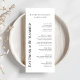 Chic-meny för din bröllopsmottagning, förlovningsfest, repetitionsmiddag och annat firande med texten "Ät dryck och vara gift", ditt namn och händelsemedatum i elegantens serif-typografi. Anpassa menyn i ren enkel typografi.