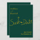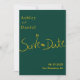 Den här grönten i elegant och guld bröllop spara datum är perfekt för ett modernt bröllop. Den enkla utformningen har kalligrafin i elegant guld på gröntens bakgrund.