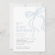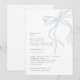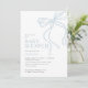 En modern kallelse till minimalistisk babydusch har en konsthögd blå båge. Anpassa uppgifter om nyckel, t.ex. om att mamma ska vara namn, datum och tidpunkt för händelsen, plats, OSA och registerinformation.