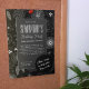 En blommigt av subtila konturteckningar skrivs ut på en födelsedagsinbjudan. Användan "Anpassa den här mallen" om du vill lägga till din händelseinformation. Med moderna geometriska varianter av blommor, inklusive japanska anemoner, daffodils, violetter, pansier, daisy, ro, Michaelmas-daisy, cinquefoil, primroses, buddleia, clematis, trädgårdsnäring, phlox och Glöm-me-nots. Utskriften är vit linjer över grått linjer mot svart bakgrund.