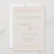 En modern, minimalistisk utformning med subtil rand på en champagnebakgrund med typografi i guld Den motsvarande OSAN finns på https://www.zazzle.com/modern_minimalist_champagne_gold_wedding_rsvp_invitation-256477951357225921