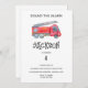 En söt röd eldmotor Birthday-inbjudan med ditt barns namn och ålder. Du kan redigera all text.