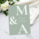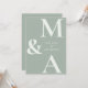 Modern inbjudan till Grönt om minimalistiskt sidbröllop. Har fet monogramtypografi och minimal grafisk design. Anpassa texten med all information om din speciella dag.