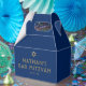 Elegant moderna blåa och guld klassisk pub mitzvah eller bat mitzvah personlig gable-favoritboxar i blått och guld med eget namn, datum och stjärnan för David. Klicka på "anpassa ytterligare" om du vill redigera typsnitt och färg och design. Kontakta Papper Grape Zazzle Designer för matchande objekt.