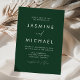 Enkelt, inbjudningar från elegant bröllop som innehåller ett vitt, handskrivet skript blandat med modernt brev mot bakgrund av grönten i skogen. Anpassa den minimalistiska bröllopsinbjudan med ditt namn och uppgifter om bröllop. De chic gröntens bröllopsinbjudningar är perfektens val för det moderna bröllop.
