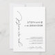 Den här svarta och vita, moderna minimalistiska bröllopsinbjudan innehåller elegantens skriptaccenter för ett tidslassigt, snyggt utseende. Dina uppgifter om bröllop visas på framsidan, med en anpassningsbar QR-kod på baksidan för gäster till OSA och åtkomst till bröllop webbplats. Ange URL:en för webbplatsen bröllop i anpassningsrutan för att skapa din egen QR-kod. Se till att skanna den med din mobila kamera för att kontrollera att den länkar korrekt före beställning!