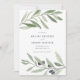 Två vackra olivoljekort i grenar ram, era personuppgifter om bröllop om detta tidlösa utlysningskort i bröllop spara datum. Vattenfärgens löv i färgtoner med nedsänkt grönt är perfekt balanserade på den vita bakgrunden ge ett sofistikerat utseende. Tillägget av ett samordnande mönster på motsatt sida ökar känslan av elegans och kvalitet. Insamling av trender i bröllop.