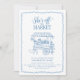 Gästerna i inbjudan för att fira med denna moderna marknad Hand plockade Inbjudningskort för möhippan, inspirerad av den rustiska charmen på en ny jordbrukares marknad. Med handritade blommigtar i blåblå toner fångas denna viskartade och moderna design perfekt upp temat "Hon är färsk från marknaden". Det är ett vackert sätt att ange tonen för en hjärtfull möhippa med en blandning av elegans och landskapsluft. Låt mig veta om du behöver hjälp med att anpassa dig!