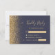 Det moderna kant i bröllop OSA-djurutrymmets lämnar elegant har ett guld faux glitter gräns. Anpassadet kombinerar handskrift, rityta och kursivt typsnitt på blek guld färgad med mörk blått bakgrund. Den omvända sidan har en matchande marin blå och guld-design.