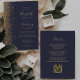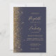 Den här elegantens lämnat kant har en modern bröllopsinbjudan i guld i glitter. Anpassadet kombinerar handskrift, rityta och kursivt typsnitt på blek guld färgad med mörk blått bakgrund. Den omvända sidan ger plats för bröllop-information på en solid mörk blått bakgrund, tillsammans med en QR-kodgäst som kan söka på din webbplats och OSA, vilket sparar kostnaderna för utskrift och utskick av separat OSA kort.
