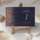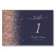 Det moderna bröllop-bordsnumrets lämnat kant i eleganten har ett utkast från ro guld faux glitter. Anpassadet kombinerar handskrift, rityta och kursivt typsnitt på blek ro färgad med mörk blått bakgrund.