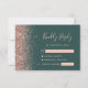 Det moderna kanten i elegantens lämnar djurutrymme i bröllop OSA har ett ro faux glitter gräns i guld. Anpassadet kombinerar handskrift, rityta och kursivt typsnitt på blek ro färgad med mörk grönt bakgrund. Den omvända sidan har en passande mörk grönt utformning och ro guld.