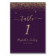 Det moderna bröllop-bordsnumret kant i denna elegant har en guld faux glitter-utformning. Anpassadet kombinerar handskrift, rityta och kursivt typsnitt i blek guld-färgad med mörkens lila.