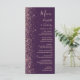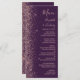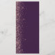 Den moderna bröllop-menyn på den lämnat kant-menyn i eleganten har en design från ro guld faux glitter. Med anpassadet kombineras handskrift, rityta och kursivt typsnitt i blek ro färgad mot bakgrund av mörkens lila. Den omvända sidan har en matchande lila för mörk och glitter för ro guld.