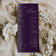 Det moderna bröllopsprogrammets lämnat kant i eleganten har en silver faux glitter-utformning. Anpassadet kombinerar handskrift, tryckplåt och kursivt typsnitt på mörkens lila.