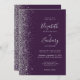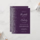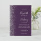 Den här elegantens lämnat kant har en modern bröllopsinbjudan i silver i glitter. Anpassadet kombinerar handskrift, tryckplåt och kursivt typsnitt på mörkens lila. Den omvända sidan har en passande lila- och silver glitter-design.
