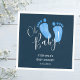 De här pojkens babyduschservar dekoreras med Oh Baby i modern manustypografi och söt, handmålad vattenfärg baby fötter i pastellblått på en mörk marin blå bakgrund. Enkelt anpassade. Ursprunglig vattenfärg © Michele Davies.