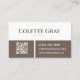 Gör ett starkt första intryck med denna moderna och professionell affärskort design. Den här designen har en ren tvåtonslayout i både taupe och vitt och framhäver ditt namn och din affärsinformation med tidslös typografi för ett polerat, sofistikerat utseende. Framsidan visningar ditt företag namn på en framträdande plats, medan baksidan organiserar din kontaktinformation och QR-kod i en tydlig och lättläst layout - perfekt för att snabbt ansluta klienter till din webbplats, portfölj eller social-media. Det minimalistiska stil ser till att ditt kort känner sig både contemporary och mångsidigt och skapar det lämpligt för ett stort antal professioneller.