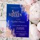 En modern, chic och glamorös 16 med glitter droppar i blå botten.