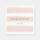 Dessa coctailservetter presenterar ett målat randmönster i rodna rosor på en vitbakgrund med elegant och enkel typografi. Skräddarsy med bruden, och brudgumnamn och ett bröllop daterar.