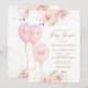 Den moderna Rosa Blommigt Balloons Guld Baby Show Inbjudningar