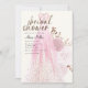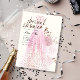 Modern rosa vattenfärgsklänning i bröllop, med vackra blommigtar i rosa. En elegant chic inbjudningskort för möhippan.