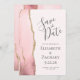 Det moderna bröllop spara datum-kortet från elegantens lämnat kant har en vattenfärgad rosa i gräns som trimmas med faux guld glitter. Med anpassadet kombineras grått-handskrift, kopieringsskylt och kursivt typsnitt på blekens bakgrund. Den omvända sidan har en passande och guld agate-design.
