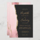 Den lämnat kant i eleganten med en modern bröllopsinbjudan har en rosa vattenfärgsagat gräns som trimmas med faux guld glitter. Med anpassadet kombinerar du handskrift, formatmall och kursivt typsnitt med guld-färgad mot svart bakgrund. Den omvända sidan har en passande och guld agate-design.