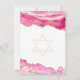 Rosa och faux guld glitter agate med en guld Star av David dekorera denna elegant vattenfärgsBat mitzvah Spara datumkortet. Den här utformningen har rosa marble agate accated med Faux guld glitter. Dina uppgifter om firande kan vara personlig i en modern gaux-guld-skriptkalligrafi. Kortets baksida har en matchande dagordning med en ljuvlig stjärna. Designad av Susan Coffey.