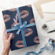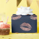 Marinblått slående in papper för modernt rosa guld- läppartryck.