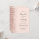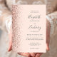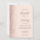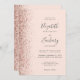 Den lämnat kant i eleganten är en modern bröllopsinbjudan som har en ro-guld faux-design för glitter. I anpassadet kombineras grått-handskrift med kol, kopparplåt och kursivt typsnitt på rosa. Den omvända sidan har en passande rosa och ro guld glitter.